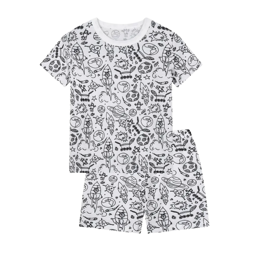 Conjunto completo (blusa + calça ou bermuda) + Kit canetinhas para tecido